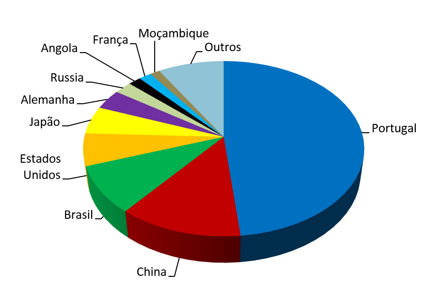 Em 2014, os acessos provenientes de Portugal representaram 48% do total (Figura 4). Estranhamente, o segundo país com maior número de acesso é a China, ficando mesmo à frente do Brasil, sendo este um indicador a estudar com maior acuidade.