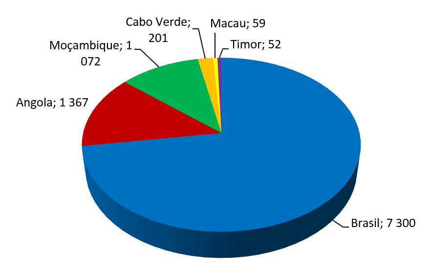 Contudo, apesar de o Brasil se destacar de forma considerável, são realizados acessos a partir de todos os Países de Língua Oficial Portuguesa, nomeadamente, de Angola e de Moçambique, com um pouco mais de 1300 e 1000 visitantes, respetivamente (Figura 5). Os acessos a partir de dispositivos móveis (tablets e smartphones) apresentam um crescimento, apesar de ainda representarem apenas 7% do total.