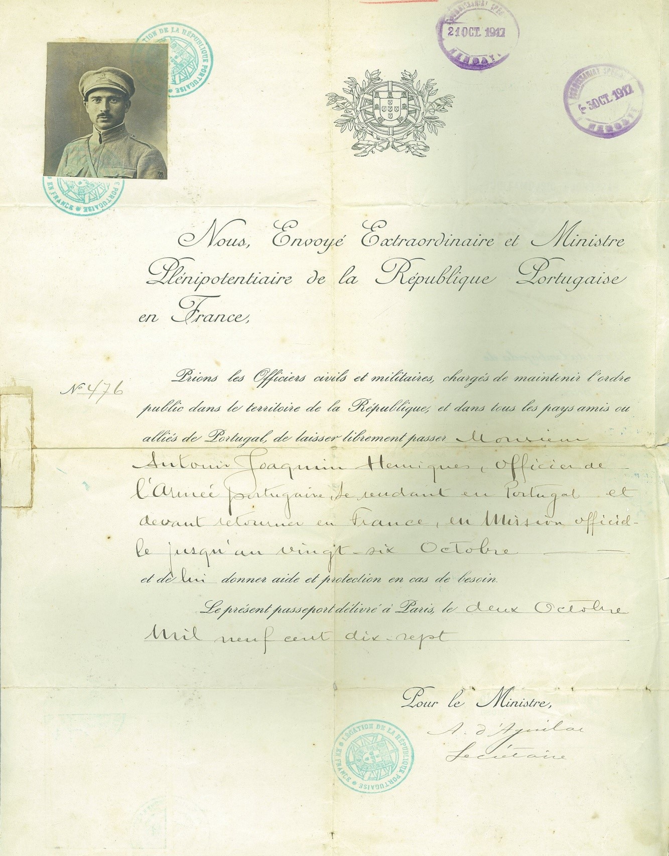 Fotografia n.º 8: Passaporte diplomático de António Joaquim Henriques (1889‑1979), Capitão em 1917