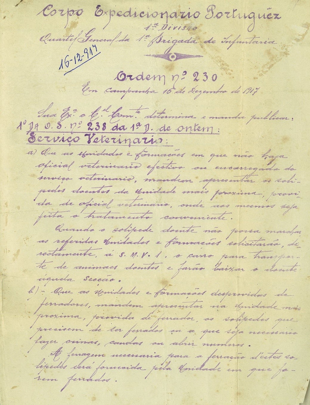 Fotografias n.º 9 e 10: Ordem N.º 230 do Corpo Expedicionário Português