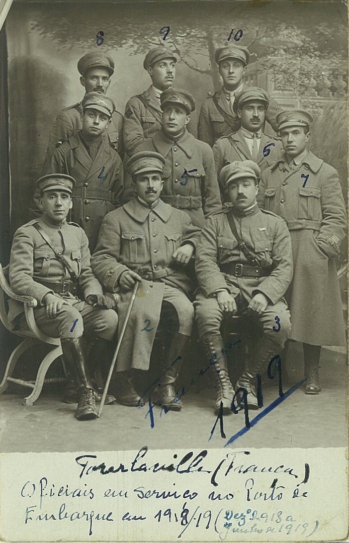 Fui comandante do 2º Grupo do VII Contingente (aproximadamente 1.000 soldados) de 17 Janeiro a 25 de Fevereiro, data em que o referido contingente embarcou para Portugal. Comandei o destacamento de Polícia, de 6 a 19 de Abril, data em que passei a comandar a Secção de Adidos, até 29 do referido mês. Finalmente entrei em licença de campanha por dez dias em 21 de Junho de 1919, já com ordem de repatriamento que aproveitei para visitar Paris, Lourdes, Biarritz, Madrid, San Sebastian e Irun, passeio este bastante agradável.