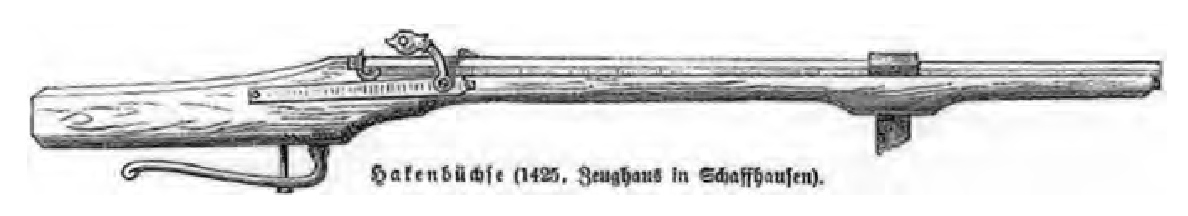 Espingardas foi o nome que em Portugal se deu às armas que noutros países europeus foram chamadas “arcabuzes”, designação que veio do alemão “hakenbüchsen” (veja-se adiante o desenho de um dos primeiros modelos, datado de 1425, conservado no Arsenal de Schafhausen, na Suiça).