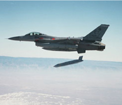 Figura 2 - Cça F-16 largando uma munição guiada por GPS.