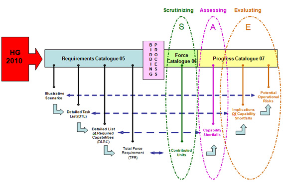 O processo de escrutínio efectuado para a realização do Catálogo de Forças (FC06) e os processos seguintes de “Assessing”, que levaram à determinação das lacunas em termos de Capacidades, assim como o da “Avaliação” que irá ser iniciado pela Presidência Alemã e finalizada pela Presidência Portuguesa da UE, serão as partes integrantes do Catálogo de Progresso.