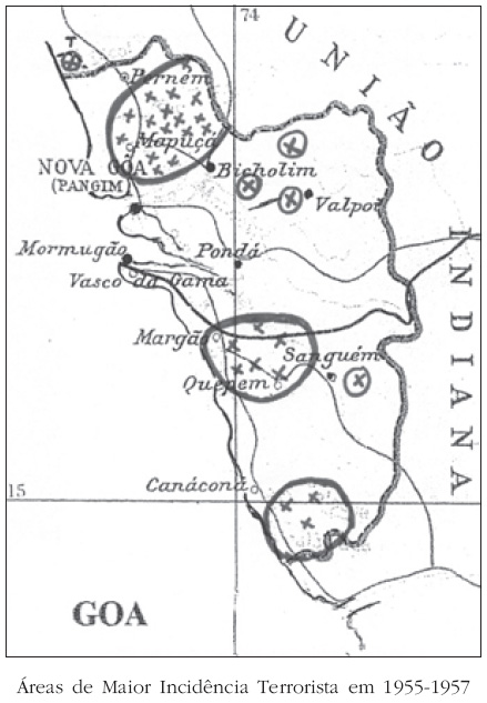 Decidido em conformidade, referir-me-ei fundamentalmente aos acontecimentos de meados de 1955 a meados de 1957, período da minha comissão de serviço de dois anos no Teatro de Operações de Goa, apontando desde já que foi no último trimestre daquele primeiro ano e por todo o ano de 1956 que se verificaram as principais e mais ruinosas acções de guerrilha por parte de elementos indianos infiltrados nos territórios, concretizados em assaltos a postos da Polícia, da Guarda Fiscal e a destacamentos militares mais isolados, em sabotagens nas vias de comunicação, estradas e caminhos de ferro, em explorações mineiras e, embora raros, em ataques a entidades com destacada preponderância no sistema económico do Estado.