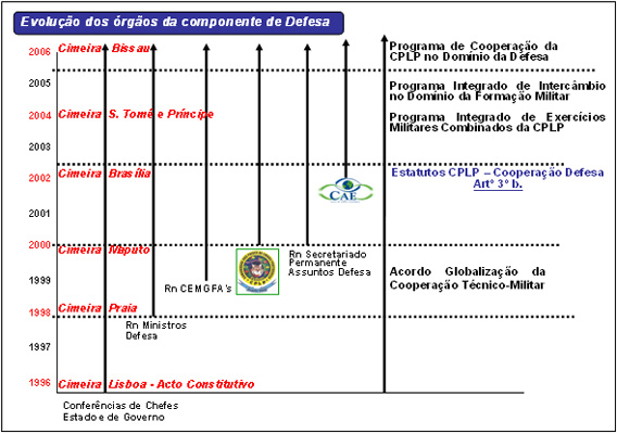 Neste sentido, a vertente da cooperação no sector da Segurança e da Defesa, tem contribuindo para a consolidação dos estados e o fortalecimento das alianças, nomeadamente através da Cooperação Técnico-Militar, aspecto que mereceria só por si uma outra reflexão. No quadro da CPLP, várias foram as Cimeiras onde se versaram assuntos relacionados com a Segurança e com a Defesa no seio da Organização, mesmo antes de esta área existir formalmente no quadro dos seus objectivos de cooperação institucional entre Estados. Resumir essas tomadas de posição, decisões, iniciativas e deliberações, é percorrer o crescimento institucional desta vertente entre a Cimeira da Praia (1998) e a designada, “Cimeira da Década”, em Bissau (2006), compreendendo o que representou e representa para a CPLP, especialmente para a cooperação no domínio da Segurança e da Defesa, esta década de existência e vivência comum.