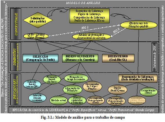 As hipóteses gerais de investigação consideradas no modelo de análise ligam a componente funcional dos perfis de liderança ao modelo de formação/desenvolvimento profissional do oficial do Exército27: