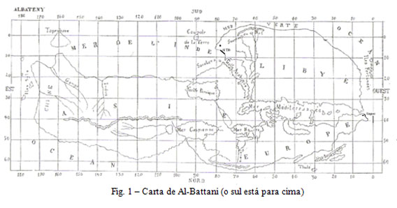 Por volta do ano 929 Al-Battani desenhou um mapa-mundo baseado em Ptolomeu onde indica que existe ligação entre o Mar da l’Inde e o Oceano (Atlântico) pelo Mar Verde. Refere um ponto Al Tib de coordenadas 82º W e 4º30min.N, sito na África Oriental, e refere também as nascentes do Nilo.