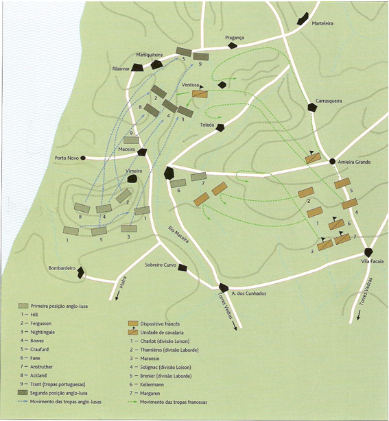 Mapa da Batalha do Vimeiro elaborado pelo Tenente Coronel Pires Nunes e publicado em: BARATA, Themudo e TEIXEIRA, Nuno Severiano, NOVA HISTÓRIA MILITAR DE PORTUGAL, Lisboa, Círculo de Leitores, 2003.