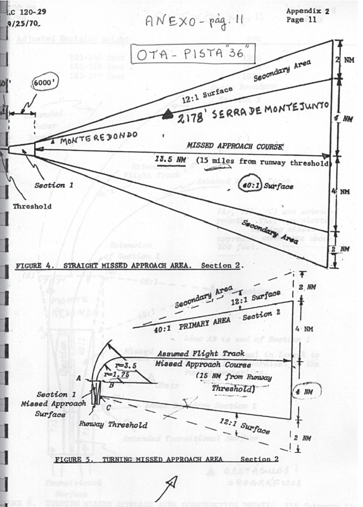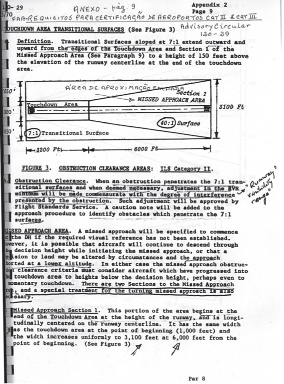 Apêndices Nº 2 da Circular FAA 120-29, páginas 9, 11, 13. Requisitos a satisfazer pelos Aeroportos para obterem a Categoria ILS II e ILS III - “Aproximações falhadas”.