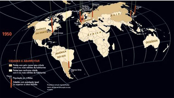 Em 1950 existiam oito Megapolís1, das quais quatro encontravam-se na Europa, como se observa na figura 1.