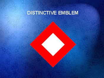 O novo emblema, constituído por uma moldura em forma de um quadrado, apoiado sobre um dos seus vértices, com bordas vermelhas sob fundo branco gozará do mesmo estatuto da Cruz Vermelha e do Crescente Vermelho.