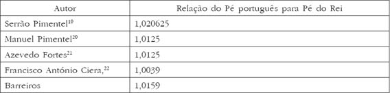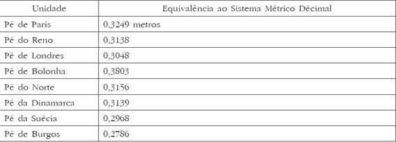 A medida de comprimento “o pé”, não foi usado porque havia discrepâncias entre essas unidades: