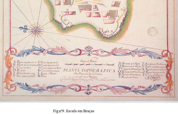 Da revista Oceanus com vários números publicados, quando das comemorações dos Descobrimentos portugueses 1999/2000, em 29 cartas e mapas, as respectivas escalas ou petipé, onze foram medidas em léguas, sete em palmos, sete em braças, duas em pés, uma em passos outra em varas.