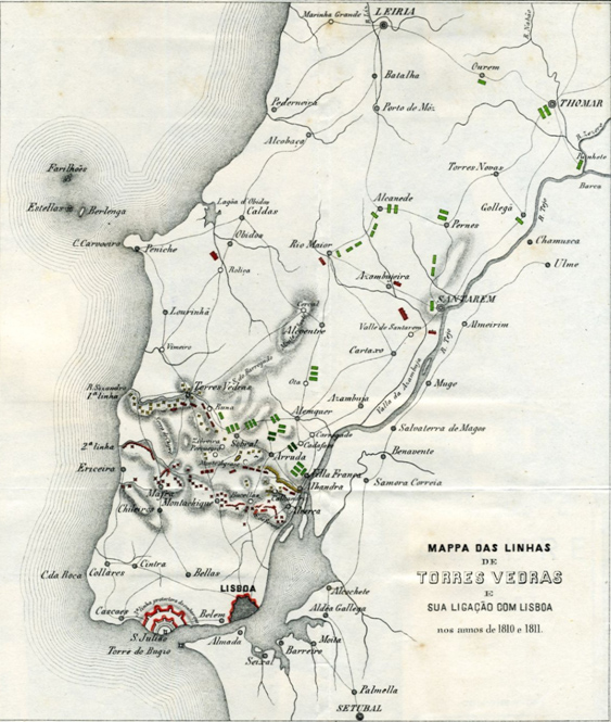 In October 1809 Wellington undertook a thorough reconnaissance of the countryside to the north of Lisbon. Accompanied by Colonel Fletcher his Commanding Engineer, and the Quartermaster-Generals of both British and Portuguese armies (and, of course, Neves Costa’ maps) Wellington examined the roads, rivers, peaks and passes of the Montachique and Montejunto hills. Immediately following his survey, on 20 October, Wellington issued a formal memorandum to Fletcher detailed his plans for the construction of two successive lines of trenches and redoutbts wich became knouwn as the Lines of Torres Vedras.”