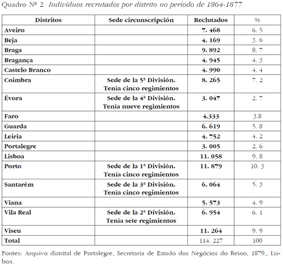 [14] efectivamente o serviço militar obrigatório, quando se considera a capacidade de recrutamento em Portugal no período de 1864-1879. Ou melhor, só 44.8% dos jovens portugueses eram chamados para as fileiras das armas portuguesas. Na transição para o século XX, mais de metade da população masculina não cumpria efectivamente, segundo Oliveira Marques, o serviço militar. Não podemos também ignorar, que o regime monárquico de certo modo adoptou uma política governamental favorável à redução de efectivos militares