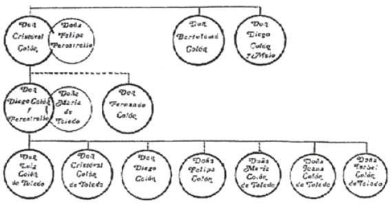 Finalmente Diogo Colom instaurou um processo contra a coroa espanhola e estando nas Antilhas, delegou a sua defesa no seu irmão Fernando, o qual para não perder a causa declarou ser o seu pai estrangeiro; e para este não ser acusado de português e traidor, afirmou ser ele de Génova.
