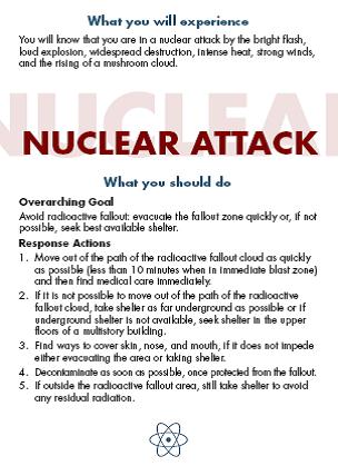 Embora as características de tais ataques possam variar substancialmente e a sua probabilidade seja altamente incerta, não deixam de criar circunstâncias estranhas e muito perigosas. Consequentemente, os cidadãos necessitam de uma estratégia global que possam utilizar para se prepararem e responderem a tais ataques.