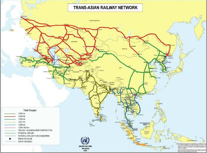 [20], ligando-se à rede ferroviária pan-europeia em vários pontos, oferecendo ligações a grandes portos asiáticos e europeus, potenciando significativamente o acesso a estes por parte de Estados sem litoral marítimo, em conjugação com a rede de auto-estradas asiáticas