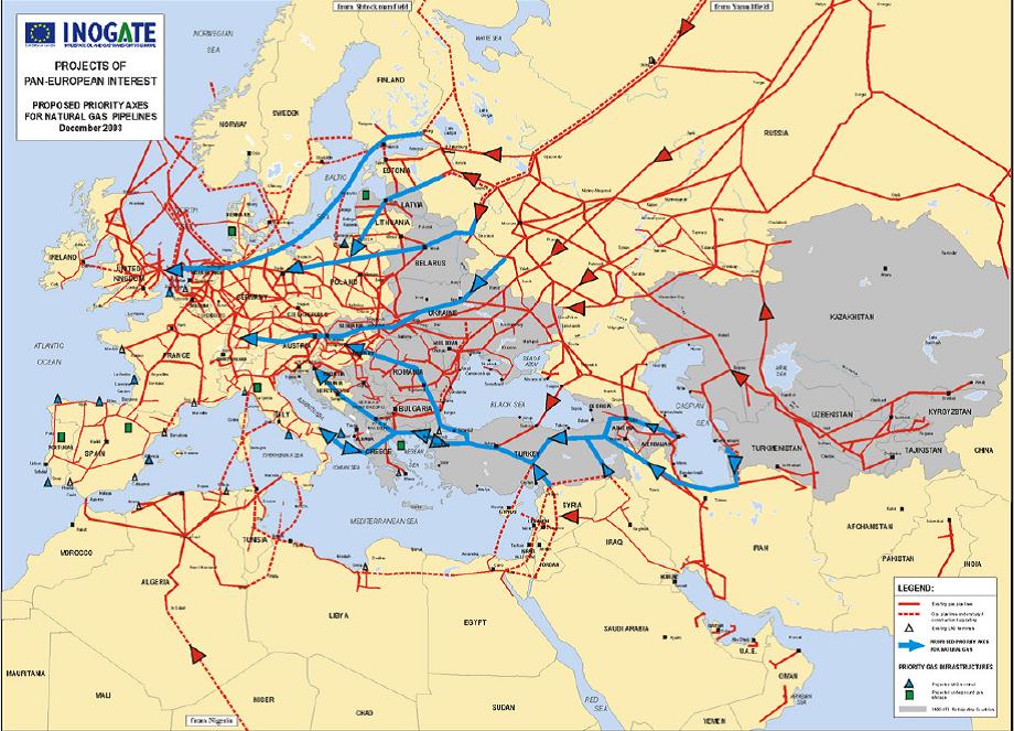 [97] De facto em 1998 quando foi assinado o acordo TRACECA a delegação russa recusou assiná-lo, por privilegiar o corredor Oeste-Este.