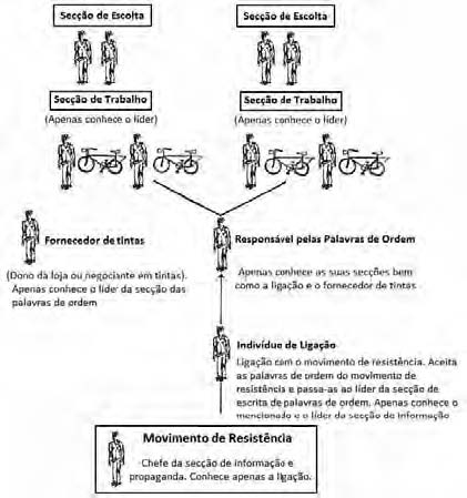 Os sujeitos com cargos públicos em tempo de paz não devem ser recrutados para a resistência. É provável serem presos e submetidos a lavagens cerebrais. Não devem ter nenhum conhecimento do movimento, assim, a organização não será comprometida, nem perde membros. Certificar-se desta “regra básica de recrutamento” a ser bem explorada, até mesmo para o inimigo5.