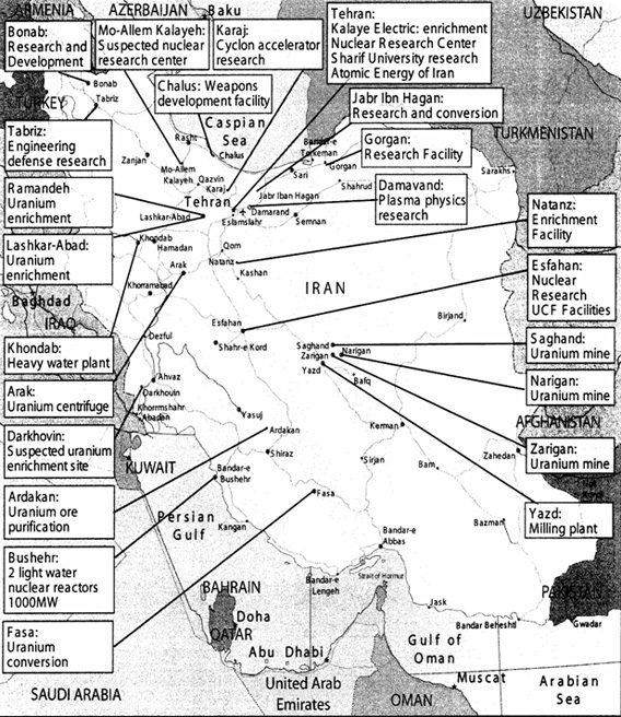 32 Estima-se que os reactores de Bushehr possam produzir por ano mais de 180 quilogramas de plutónio, o suficiente para se construir um arma nuclear primitiva. Fred Wehling; (1999); “Russian Nuclear and Missile Exports to Iran”; The Nonproliferation Review nº4; pp. 137.