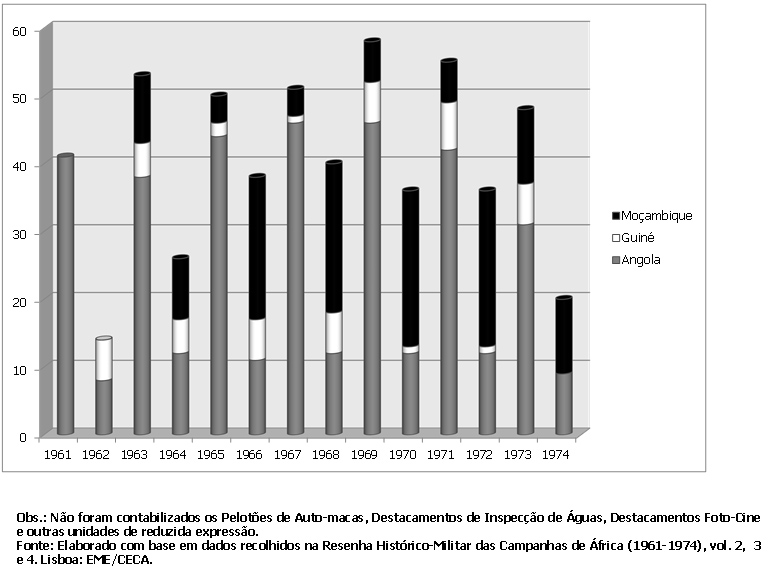 Fonte: Elaborado com base em dados recolhidos na Resenha Histórico-Militar das Campanhas de África (1961-1974), vol. 2, 3 e 4. Lisboa: EME/CECA.