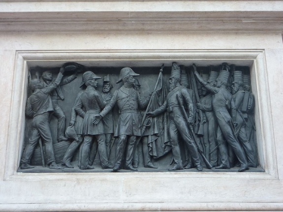 Baixo-relevo da estátua de D. Pedro IV na praça da Liberdade no Porto