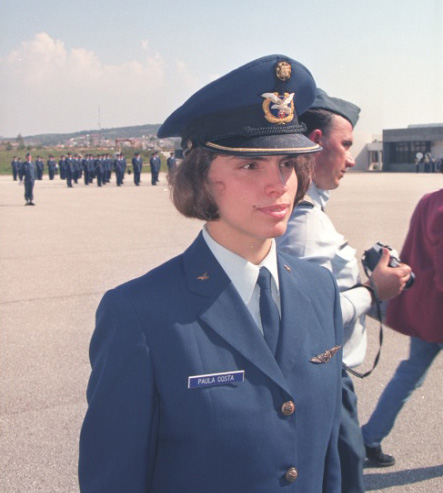 A pioneira foi, com efeito, Paula Costa, ex-Major Piloto Aviador da Força Aérea Portuguesa. Desse tempo recorda os obstáculos e grandes dificuldades que alguns instrutores e mesmo camaradas tiveram em lidar com as duas primeiras cadetes femininas na Academia da Força Aérea. “Mas também lembro, com admiração, aqueles que souberam olhar para nós como mais um elemento pertencente ao conjunto de alunos que tinham de formar,” diz Paula Costa, para quem estes últimos “souberam estar à frente do seu tempo.”