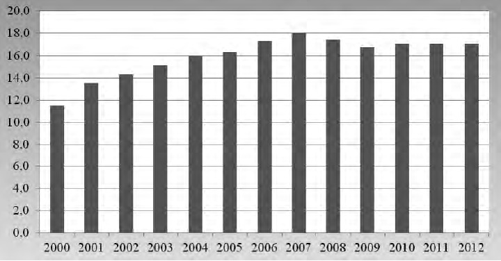 2012 | 69 | 10 | 79 | 12,7 |
