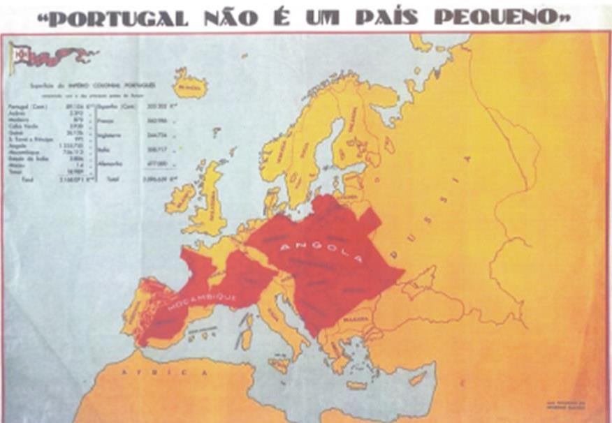 Figura 2 – Mapa exibido nas escolas portuguesas, até aos anos de 1960. Pretendia comparar o tamanho das províncias (Angola e Moçambique) com o restante território europeu