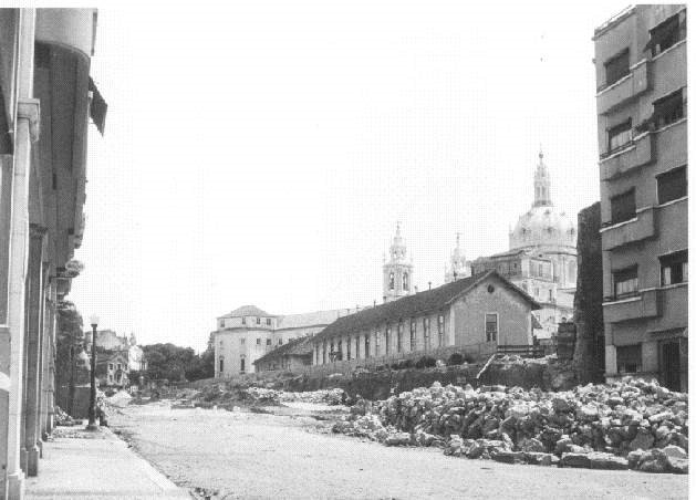 Junta de Freguesia da Lapa, s.d. Avenida Infante Santo: Demolição do muro do Hospital Militar [imagem eletrónica] Disponível em: http://www.jf-lapa.pt/site/galeria_imagens.asp?folder=avenida+infante+santo+-+obras+de+construcao. [Consultado em 15 de Junho de 2014]