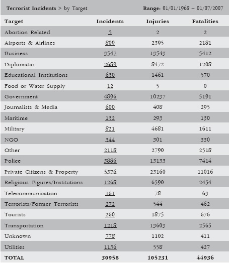 Encontramos muitas vezes discrepância nos resultados face aos conceitos utilizados para a análise do mesmo fenómeno. Porém, independentemente do que se pretende quantificar e da escala utilizada, estas análises explicativas e retrospectivas são sempre importantes e úteis para fins académicos mas, em nossa opinião, também o são sobretudo para órgãos e ou entidades que efectuam a gestão das consequências dos atentados pois permite-lhes, a partir das lições aprendidas, estimar custos, criar cenários e treinar modalidades de acção para esses cenários no sentido de minimizar vulnerabilidades, maximizando as suas potencialidades de actuação.