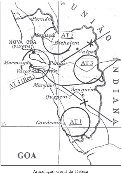 (É de referir desde já, até por razões a seguir apontadas, que, inteiro conhecedor da nossa Ordem da Batalha nos três distritos e do esquema geral do seu emprego no terreno, as Forças Armadas da União Indiana montaram em Goa uma manobra terrestre, apoiada por meios aéreos, na qual, realizando a surpresa, contrariaram a manobra do Plano “Gralha” e doutros como o Plano “Sentinela”, que se lhe seguiram. Foi essa manobra a de utilizarem efectivamente como um dos principais Eixos o de norte, por Bicholim, directo a Pangim, de não se empenharem em força no Eixo de Sul, por Polém e Margão, e de montarem um segundo esforço sobre Pondá, o qual, em conjugação com o principal, o de Bicholim, lhe permitiu correr sobre Mormugão e “cortar” a meio o território do distrito e a estrutura da defesa montada, atingindo rapidamente, também pela menor distância a vencer, o seu Objectivo.