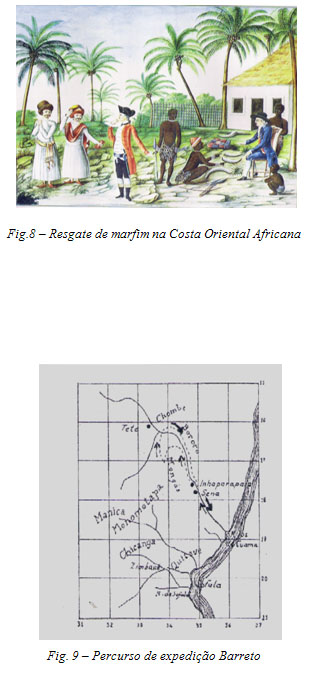 No entanto o transporte de escravos para a Europa e para o Brasil era pouco rendoso, porque a viagem era longa e perigosa por causa dos naufrágios na zona do Cabo da Boa Esperança e da pirataria que já existia nessa altura. Além disso, os portugueses não levavam muitos escravos da costa oriental africana para o Brasil porque precisavam de mão-de-obra na Índia, onde estava concentrada toda a administração portuguesa no Oceano Índico.24 Convém notar que a troca e venda de escravos era um comércio muito divulgado em África e não foi iniciado pelos portugueses. Instalados em feitorias e fortalezas em Sofala, Tete, Sena, Quelimane e Ilha de Moçambique, tendo contactos com o interior e tendo estabelecido relações comerciais com o Monomotapa, os portugueses começaram a sentir necessidade de dominar esse comércio, por duas razões: