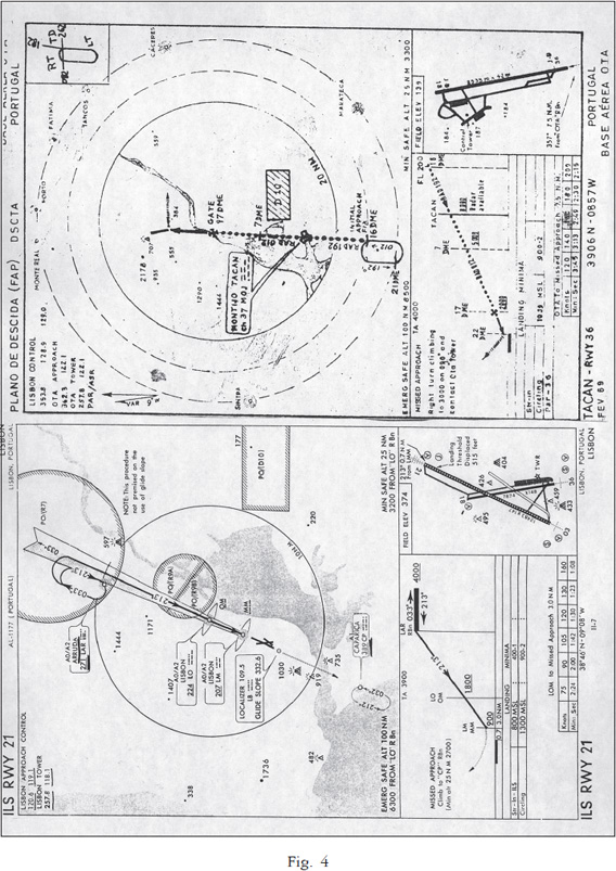 11. Um estudo comparativo das cartas de aproximação e aterragem às pistas do Aeroporto de LISBOA-PORTELA DE SACAVÉM e da BASE AÉREA DA OTA evidenciam como a orografia do terreno de implantação e suas vizinhanças condicionam procedimentos de entrada e saída das aeronaves que os demandam.