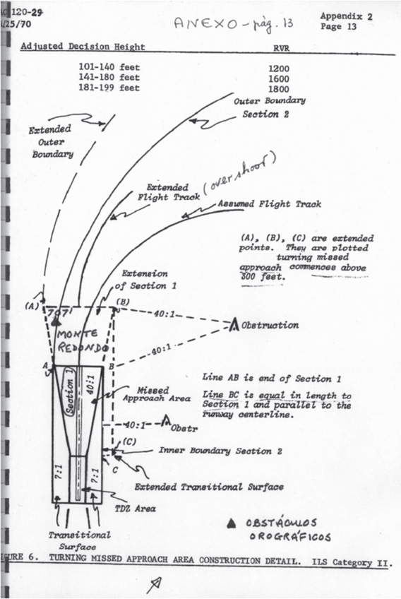 Apêndices Nº 2 da Circular FAA 120-29, páginas 9, 11, 13. Requisitos a satisfazer pelos Aeroportos para obterem a Categoria ILS II e ILS III - “Aproximações falhadas”.