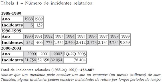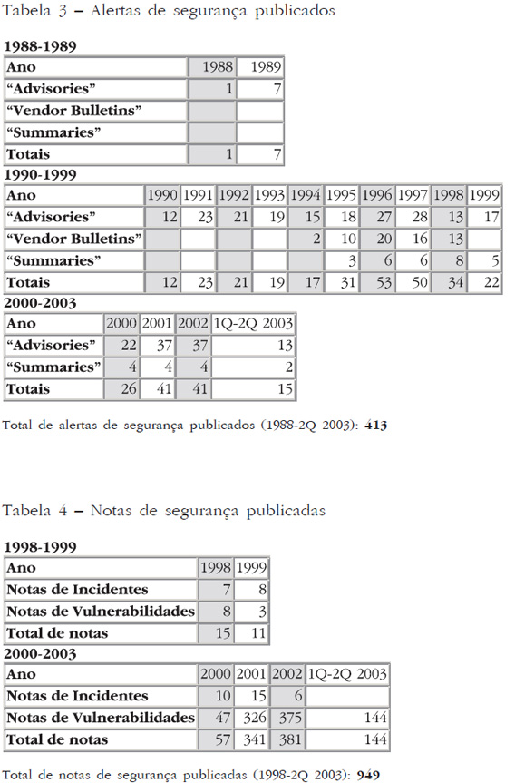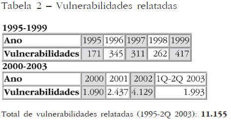 20 Fonte: http://www.cert.org/stats/cert_stats.html#vulnerabilities, (Last updated July 15, 2003).