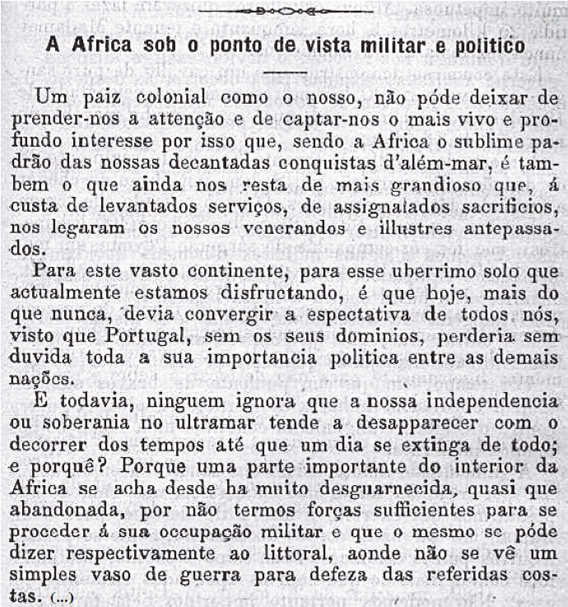 O trabalho pretende-se dinâmico em termos dos leitores visitarem o acervo da Revista Militar, havendo a maior das aberturas ao seu andamento metodológico, apresentando esta narrativa recortes de 1854, 1904 e 1954.