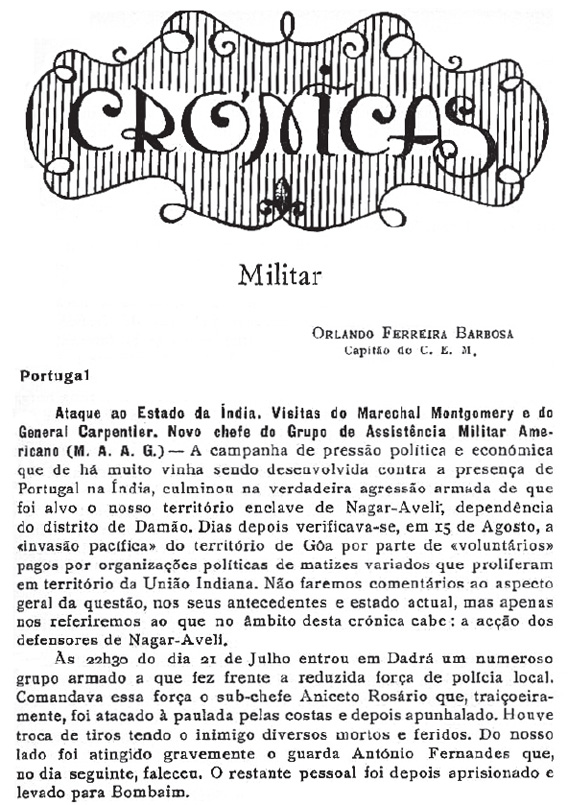 Artigo do Tenente de Administração Militar, A. David Branquinho.