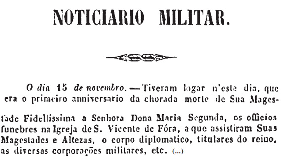 * O dia 15 de Novembro (primeiro aniversário da morte da Rainha D. Maria II).