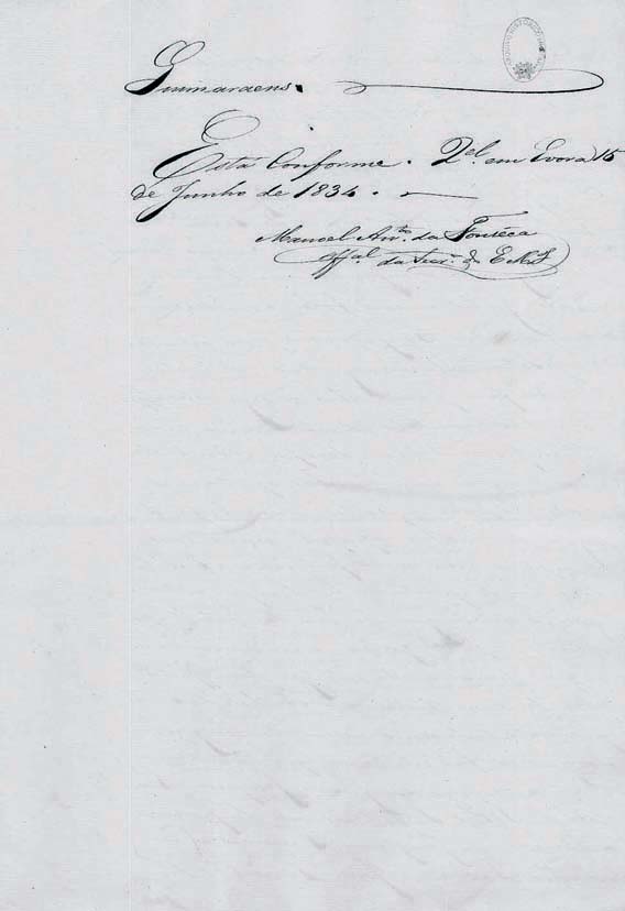 Está conforme. D.el em Évora 15 de Junho de 1834