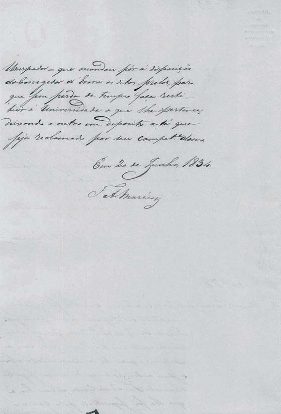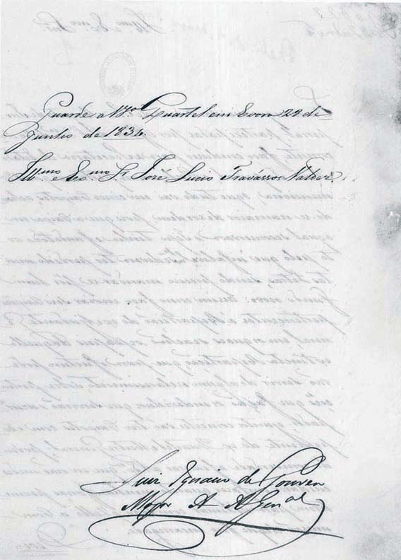 Deos Gde a V. Exª Secretaria d’Estado dos Negócios do Reino em 9 de Junho de 1834.