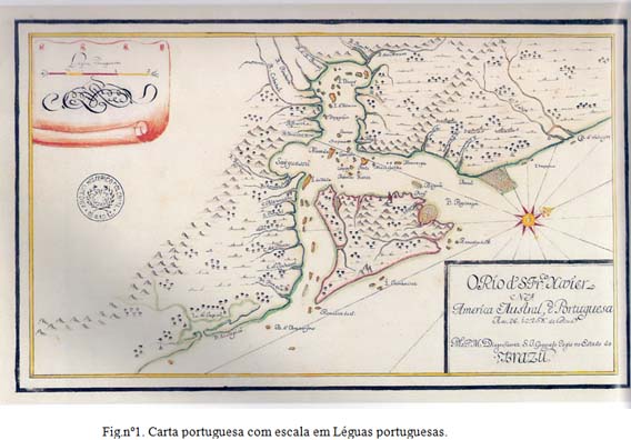Na obra “Tesouros da Cartografia Portuguesa” editada em 1997, a medida mais vulgar nas cartas é a légua, embora em plantas parcelares se usem os palmos. Há ainda equivalências entre léguas portuguesas e japonesas e as milhas italianas: Para agudizar o problema, há mais informações sobre
