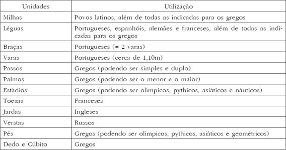 Segundo Fontoura da Costa7, o mais antigo texto português em que figura a légua, como medida itinerária, está no Cancioneiro da Ajuda8 (1270/1350) e como medida marítima nos escritos de Azurara (séc. XV d.C.) 9.