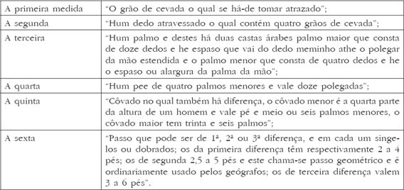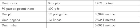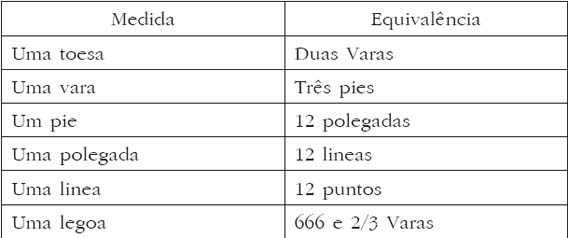 A medida de comprimento “o pé”, não foi usado porque havia discrepâncias entre essas unidades: