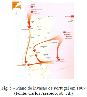 Aparentemente, o plano de invasão de Napoleão apresentava amplas condições de sucesso: atacava Portugal através de três eixos de penetração (Minho, Beiras e Alentejo)35, as suas forças eram experientes, o inimigo estava desorganizado e, pensava-se, não podia contar com o apoio britânico. Como Napoleão tinha noção das dificuldades que o áspero terreno do Norte de Portugal ofereceria às movimentações militares, planeou a conquista de Lisboa através de movimentos executados ao longo da faixa litoral.
