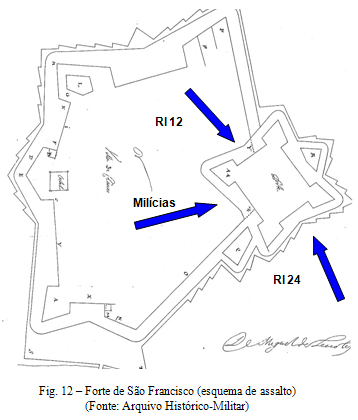 Artigo VI — O Sr. General Silveira, querendo dar à guarnição uma prova de estimação, que lhe tem inspirado a braveza, que mostrou nos seis dias que durou o bloqueio do forte de S. Francisco, consente que os Srs. oficiais só entreguem as suas espadas à saída de Chaves; e em atenção ao bem que se comportou o Sr. comandante consente que este conserve a sua.