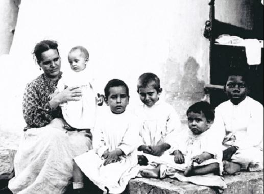 Degredada tomando conta de crianças, fotografia de Veloso e Castro 1905