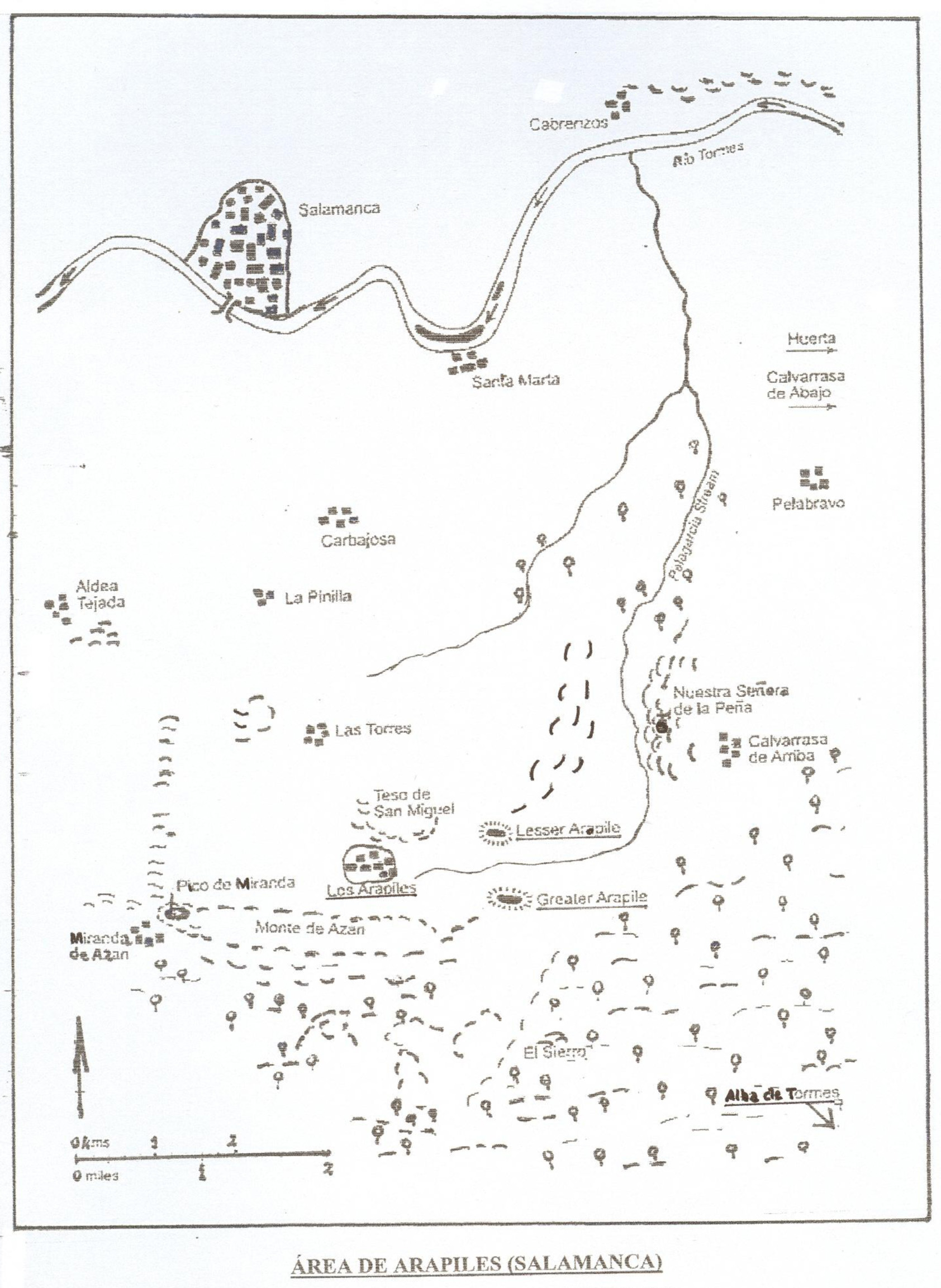 A posição, embora fraca, de Arapiles, sete quilómetros e meio a sul de Salamanca, seria, no seguimento do movimento encetado, onde os dois exércitos finalmente se deteriam. Compreendia, conforme a carta junta, um terreno planáltico plano, pouco arborizado, de cerca de 5.000 metros onde nascia a Ribeira de Pelagarcia, afluente do Rio Tormes, a qual, após rodear uma colina se encaminhava para norte. Esse planalto apresentava duas linhas de colinas sucessivas e linhas de água com tufos de vegetação e alguns caminhos que atravessavam o vale, destacando-se a norte a do cume rochoso “pequeno Arapile” e o “teso de San Miguel” e, a sul, o cume também rochoso do “grande Arapile e o Monte de Azan. Na baixa sobre a nascente da ribeira situava-se a pequena aldeia de Arapiles que viria a dar o nome à batalha. Nos dias ante-